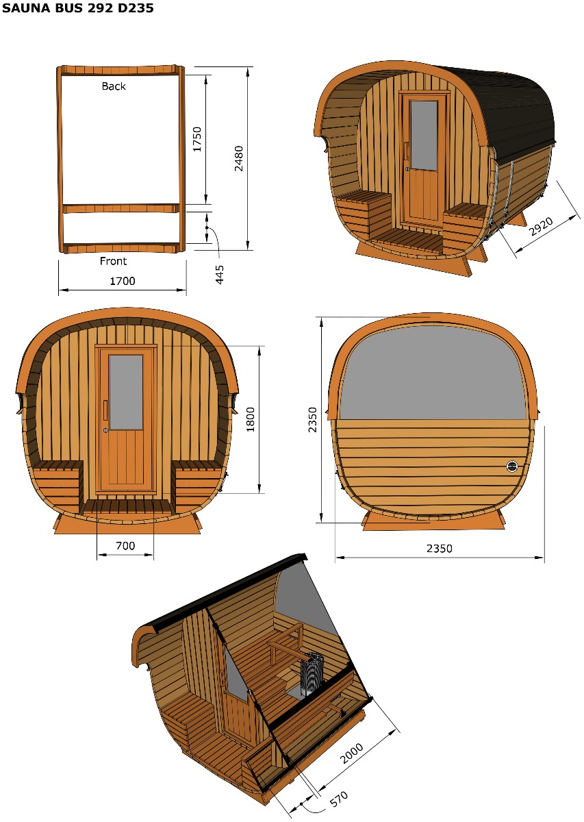 Tynnyrisauna AKSELI on loistava paikka rentoutua rankan työpäivän jälkeen. Kuudelle hengelle suunniteltu sauna on täydellinen, kun pyydät ystäviä kylään. Tynnyrimuoto auttaa jakamaan lämpöä ja höyryä tasaisesti, ja pitkä terassi on täydellinen paikka jäähtyä ja nauttia saunajuomaa. Tynnyri on valmistettu 45 mm:n lämpökäsitellystä puusta ja päätyseinät on valmistettu 28 mm:n lämpökäsitellystä puusta. Saunan penkit on valmistettu lepästä, minkä ansiosta ne eivät kuumene käytön aikana. Muut puuosat on valmistettu käsittelemättömästä kuusesta. Katto on päällystetty kuusikulmaisella bitumihuovalla (sisältyy hintaan). Ikkuna- ja ovilasit ovat turvallista karkaistua lasia. Tuote toimitetaan litteänä pakkauksena, ja se sisältää kaiken tarvittavan nopeaa asennusta varten. Voit valita joko Harvian puukiukaan tai sähkökiukaan. Tynnyrisaunassa on kaksi 40 x 60 cm:n ikkunaa takaseinässä vakiona, mutta voit valita myös kaari-ikkunat tai pyöreät ikkunat. Uuden tynnyrisaunan asentamiseen tarvitset vain tasaisen alustakivi- tai perustuskivipohjan, joka kantaa saunan painon ja pysyy vakaana ja tasaisena. Asiantuntijamme voivat auttaa sinua suorittamaan asennuksen nopeasti ja kilpailukykyiseen hintaan. Jos sinulla on kysyttävää, älä epäröi ottaa yhteyttä – teemme kaikkemme auttaaksemme sinua.