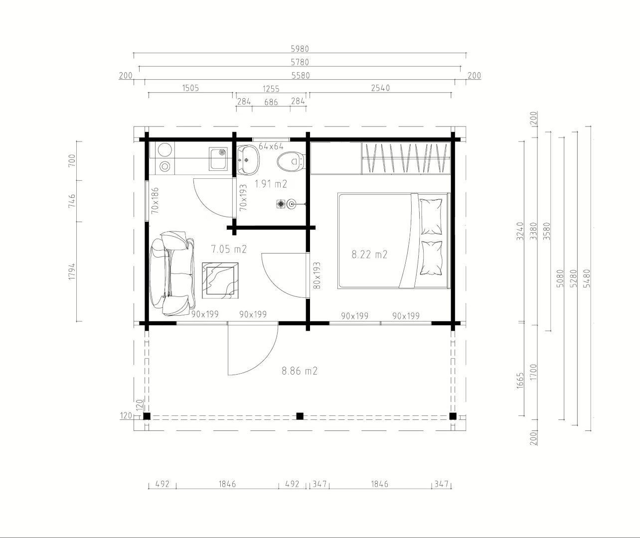 Hirsimökki PEKKA 70 | 5.4 x 5.9 m; 70 mm