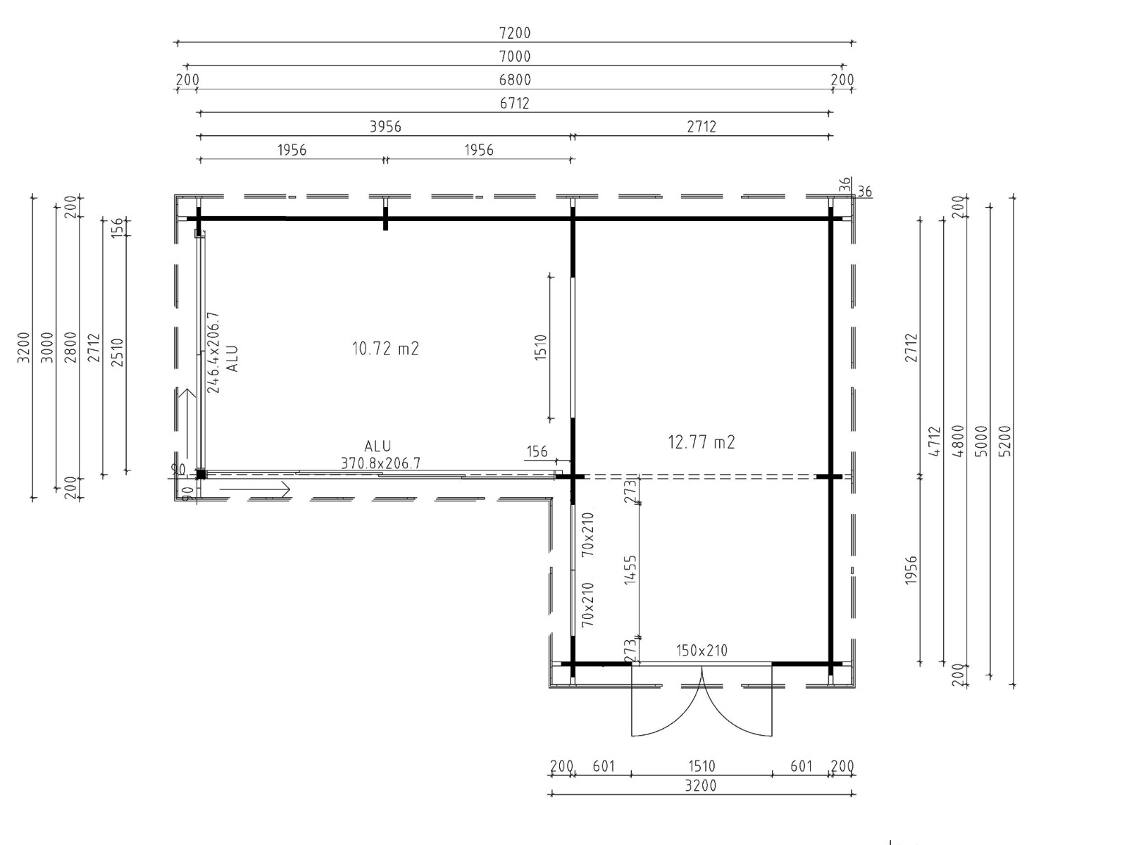 Kulmamökki ALU Concept QUINTA 70 | 7.2 x 5.2 m; 70 mm