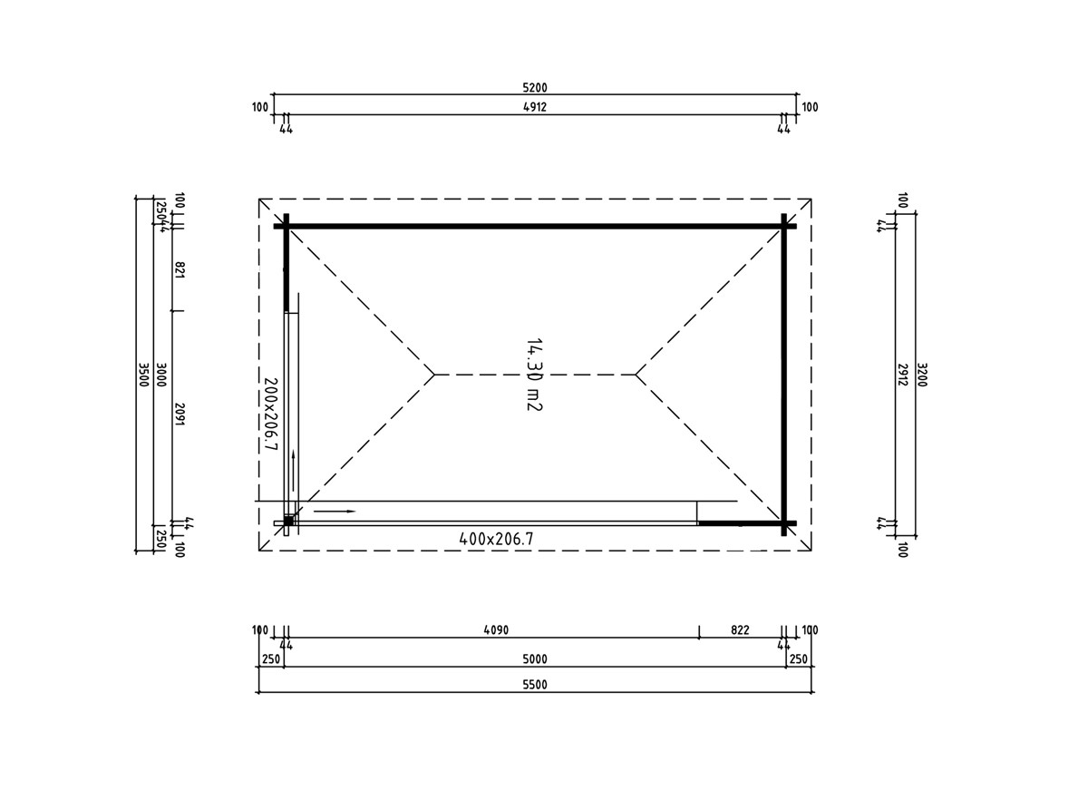 Kattorakenne koostuu massiivisista kattopalkeista ja 18 mm paksuista ponttilaudoista, jotka soveltuvat suuremmille lumikuormille.