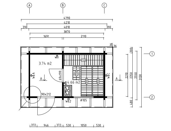Pihasauna KATRI 70 | 4.8 x 3.2 m; 70 mm