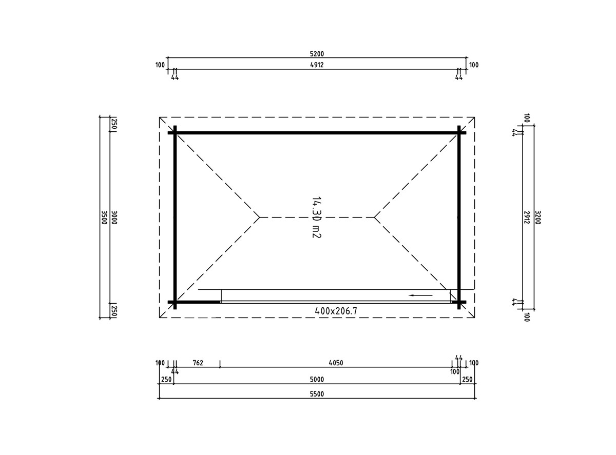 Pihapaviljonki ALU 44 D | 5.5 x 3.5 m; 44 mm