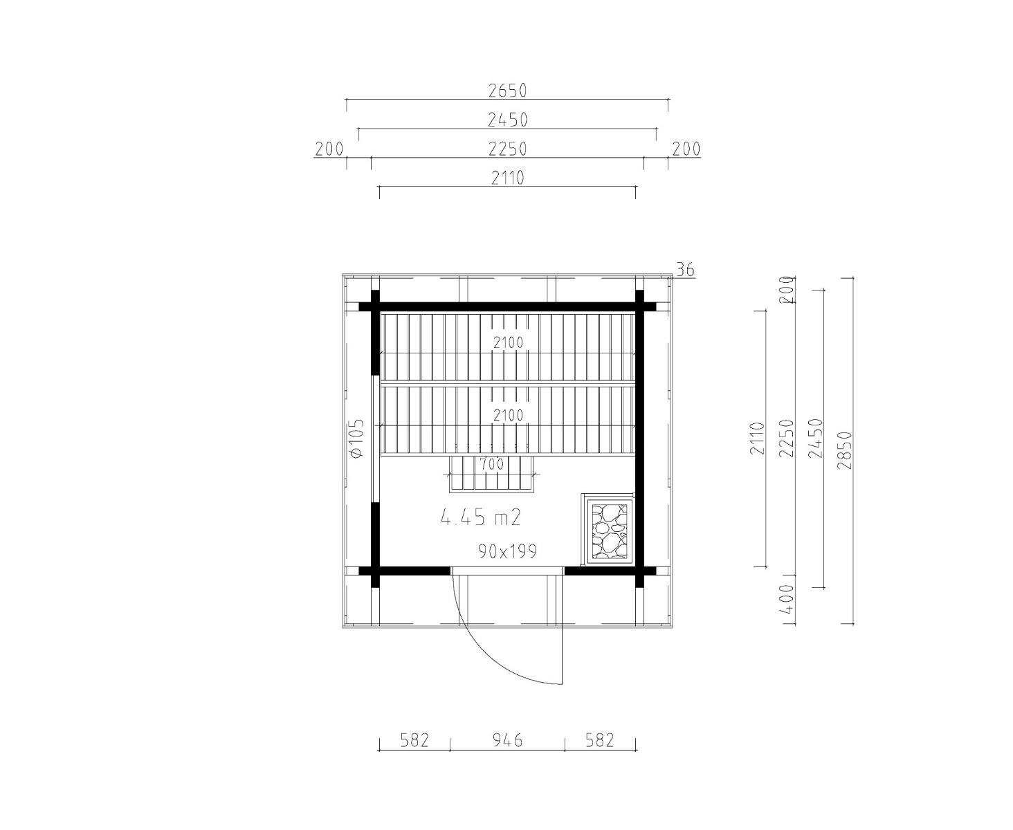 Pihasauna MARIA 70 | 2.8 x 2.6 m; 70 mm