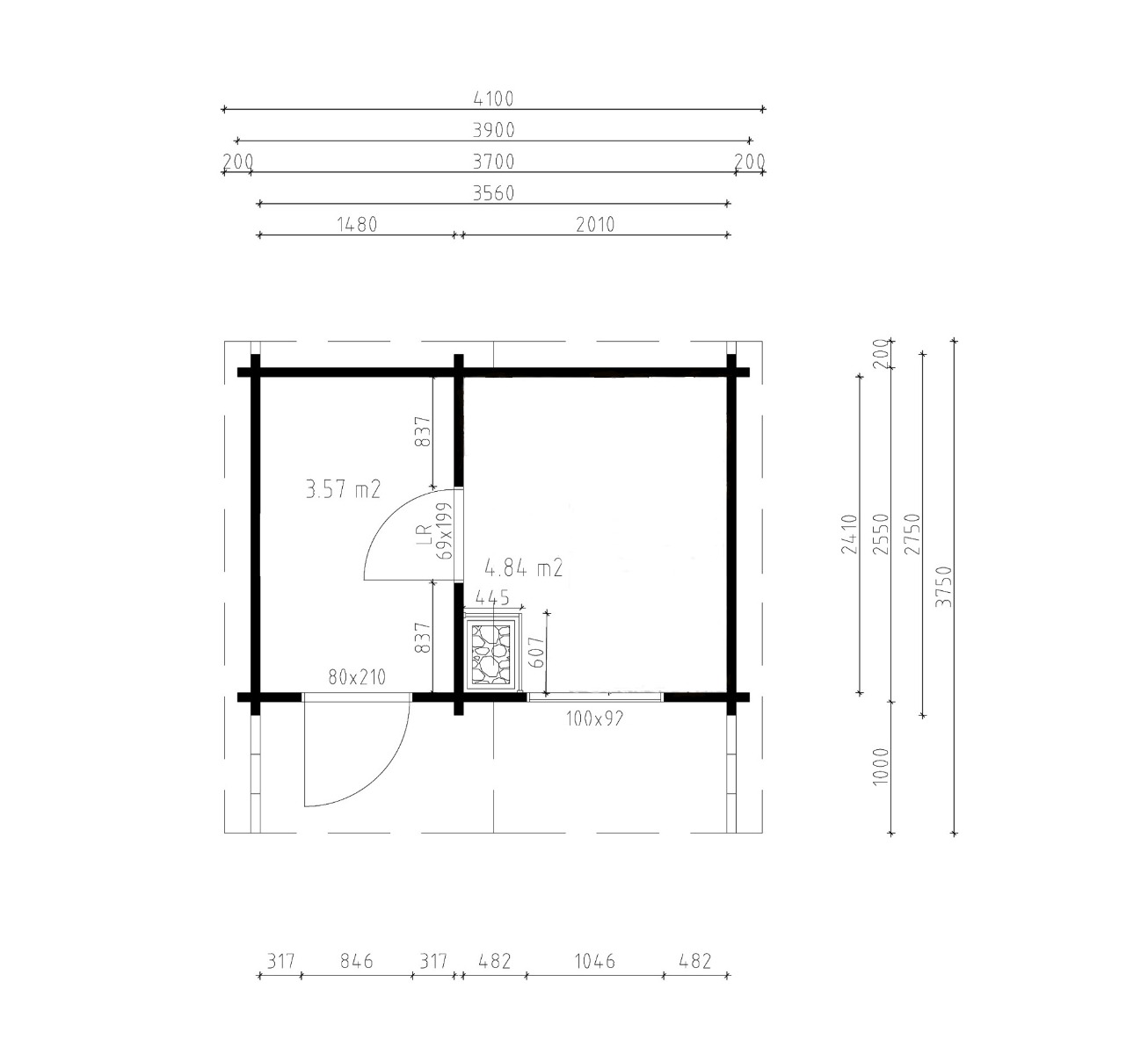 Pihasauna REMI 90 | 4.1 x 3.7 m; 90 mm