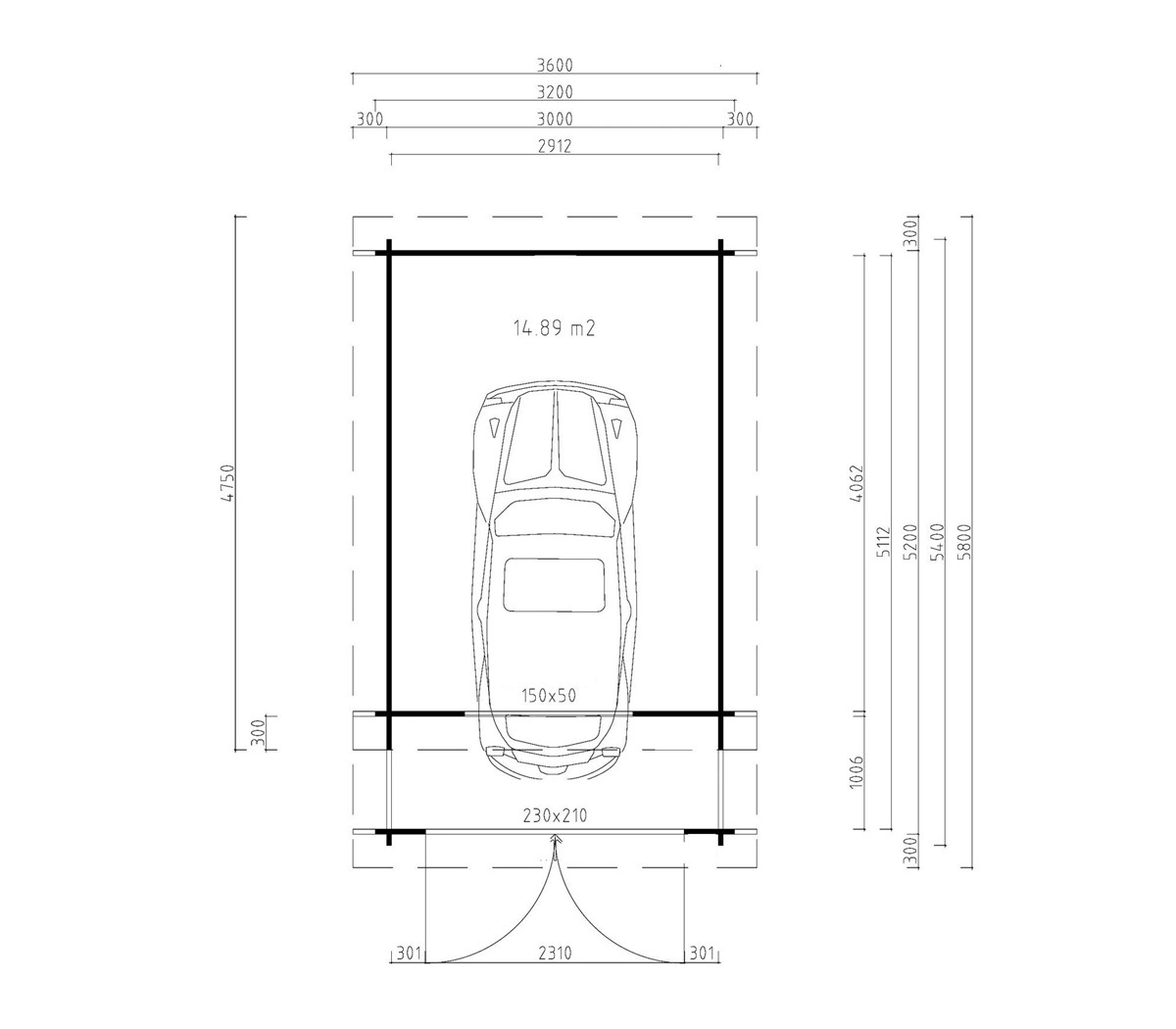 Puinen autotalli IBIZA 70 A | 3.6 x 5.8 m; 70 mm